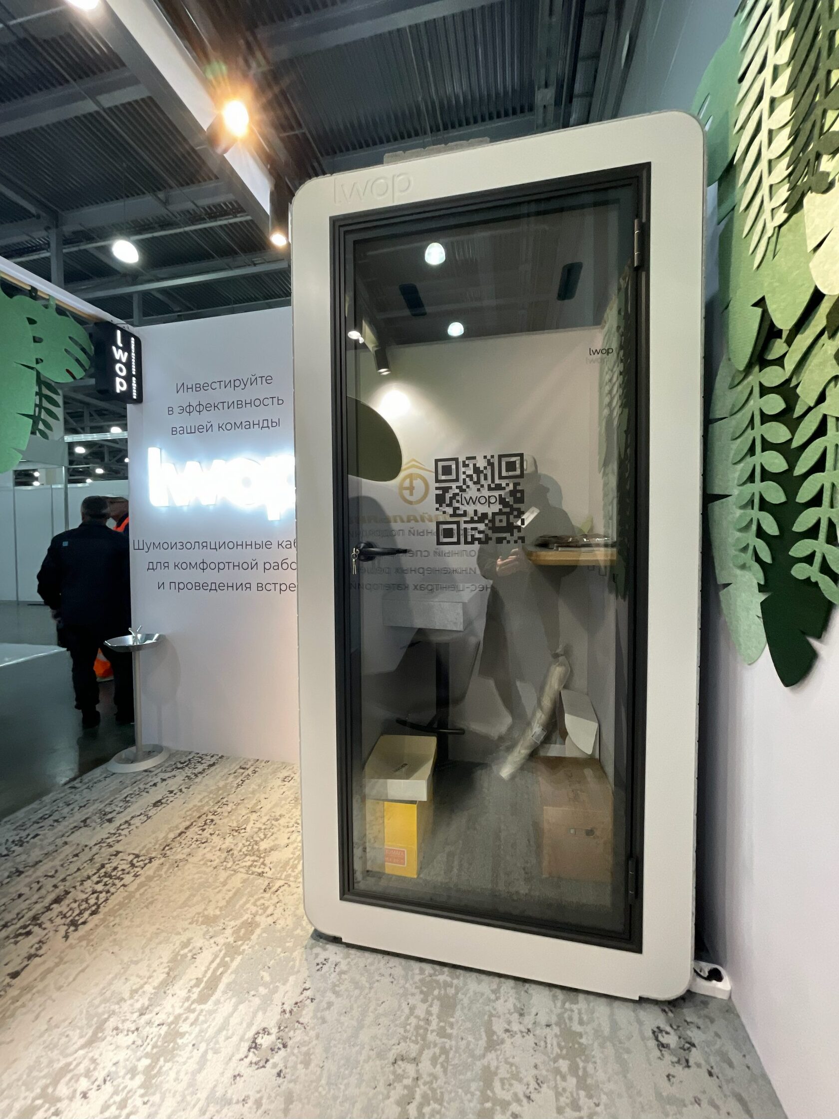 Ключевой блок экспозиции — акустическая кабина LWOP ONE, а также модели ONE SKY glass и ARC. Эти решения объединяют мобильность, высокую звукоизоляцию, современный дизайн и «инженерию из коробки»: вентиляцию с заданным воздухообменом, диммируемое освещение, силовые и медиа-порты. Для экспресс-переговоров, HR-интервью или видеоколлов вы получаете стабильный фон и предсказуемое качество звука.